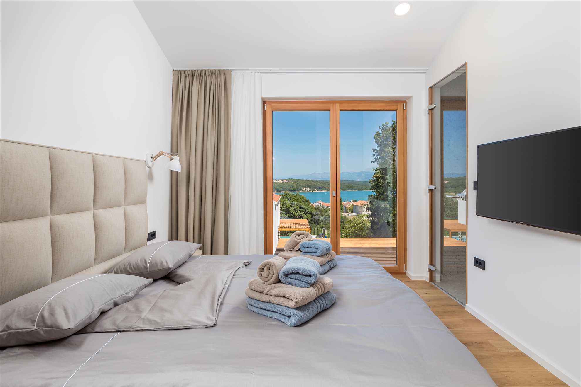 The villas are situated in a charming seaside village Soline in the Soline bay on the island Krk, the largest and greeniest island in the Adriatic Sea. Just a short stroll from the villa, the beautiful beaches of Soline await. Known for its crystal-clear waters and therapeutic mud baths, the beaches offer both relaxation and unique wellness opportunities. Or you can visit some of the most beautiful towns on the island: Vrbnik, situated on a 50 m cliff, Krk, one of the oldest towns in the Adriatict, Baška with sandy beaches….