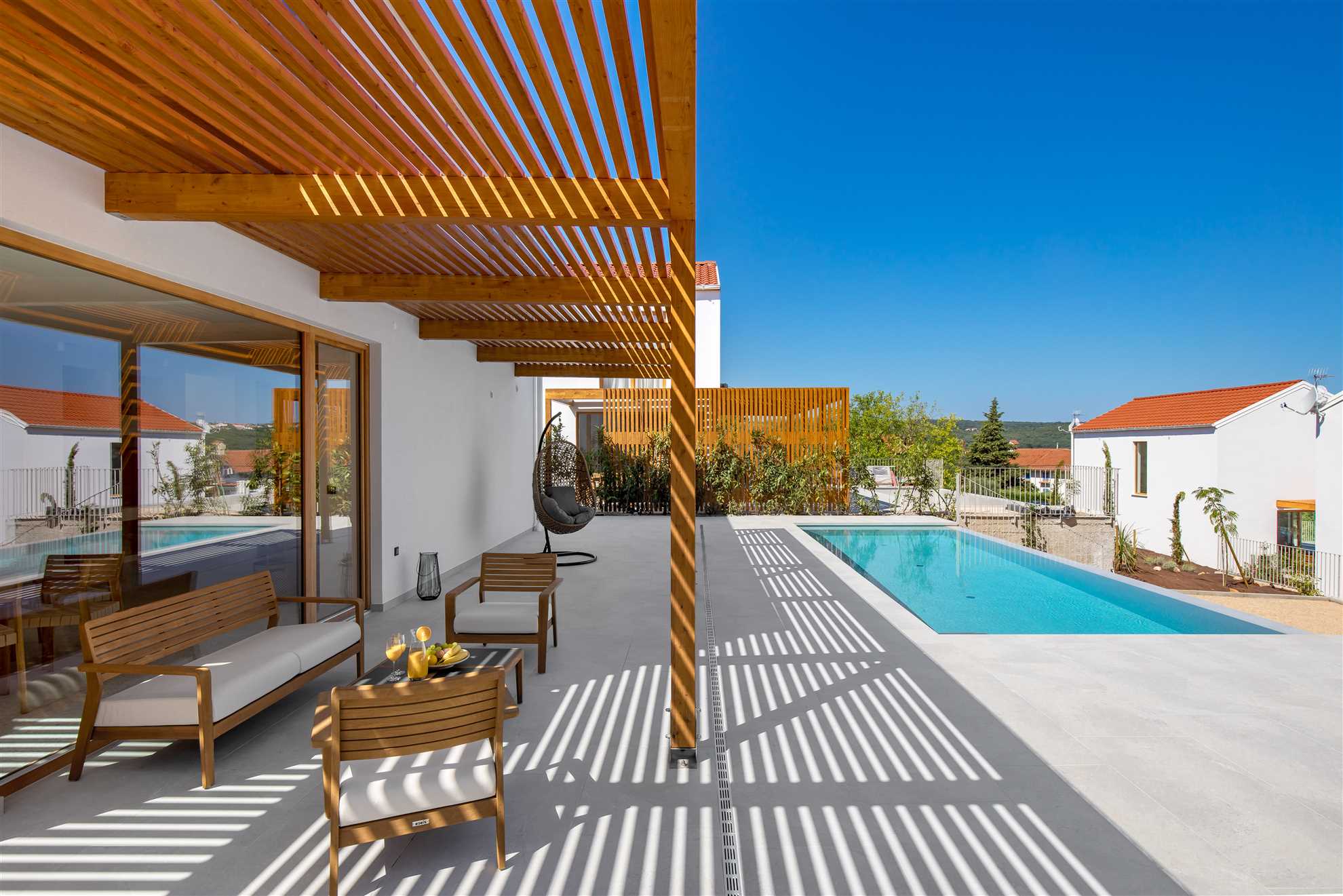 We are presenting you 4 new villas. The private pool villas are prime of architecture, modern design based on tradition. Just 280 m away from the beach.